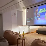 Si te alojas en el Apartment für 6 - Bergblick, Balkon, Kamin, Kino, Yoga, Parkplatz Garmisch-Partenkirchen, podrás relajarte en su terraza. El apartamento se encuentra a unos 3 km del Ludwigstraße. Los huéspedes tienen acceso a Wi-Fi.